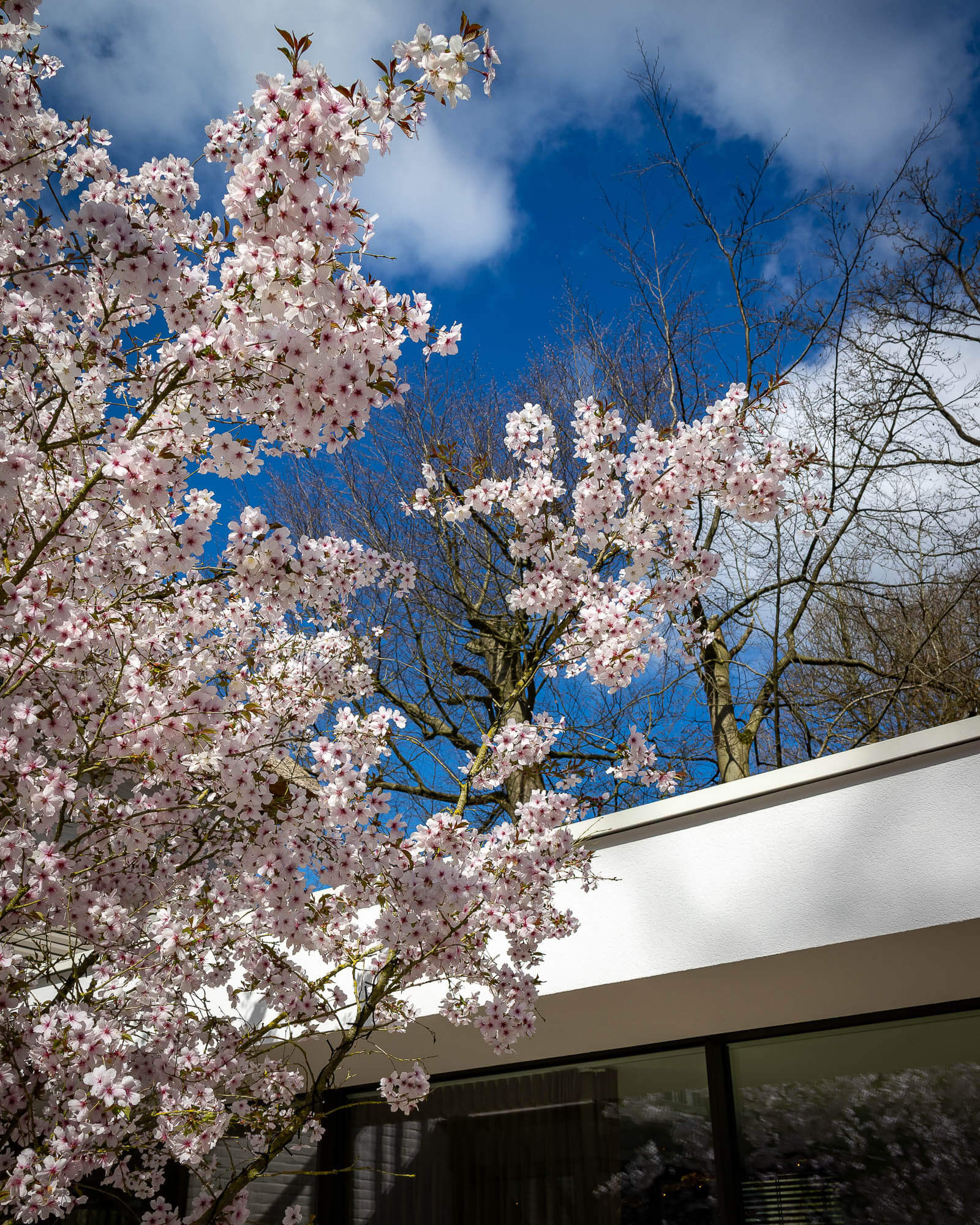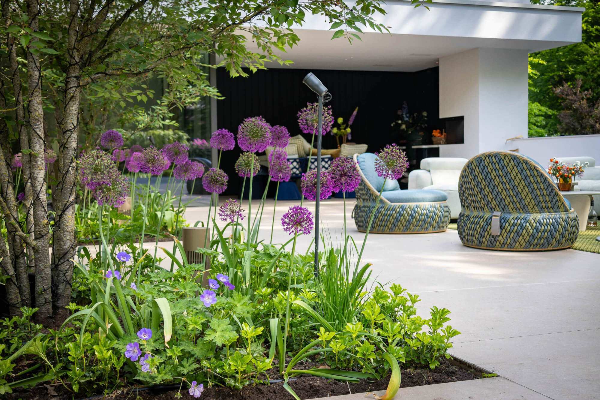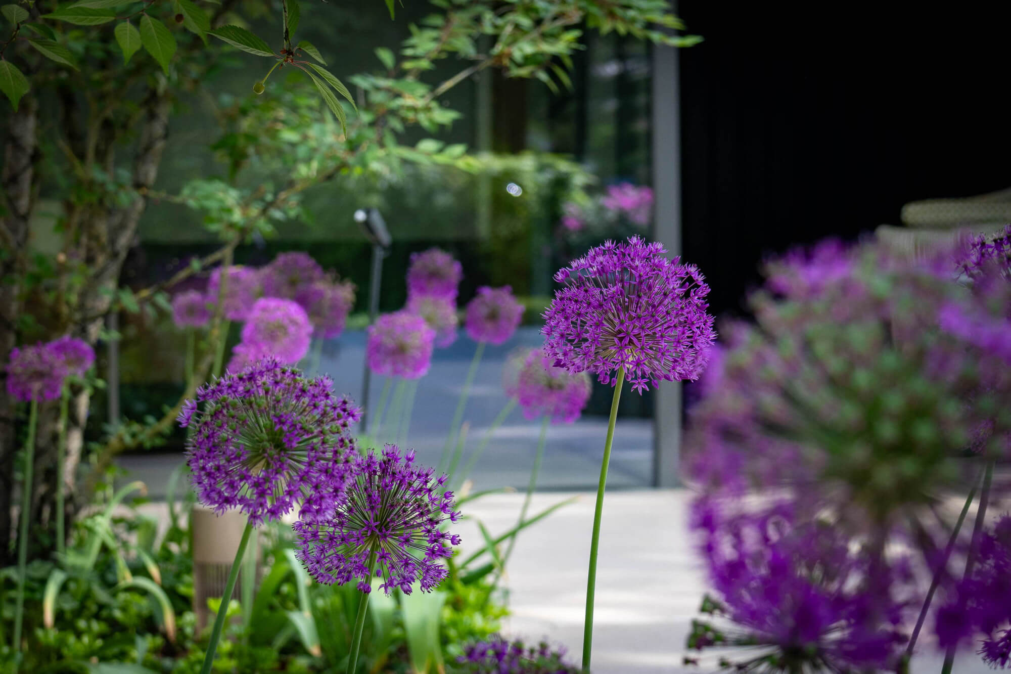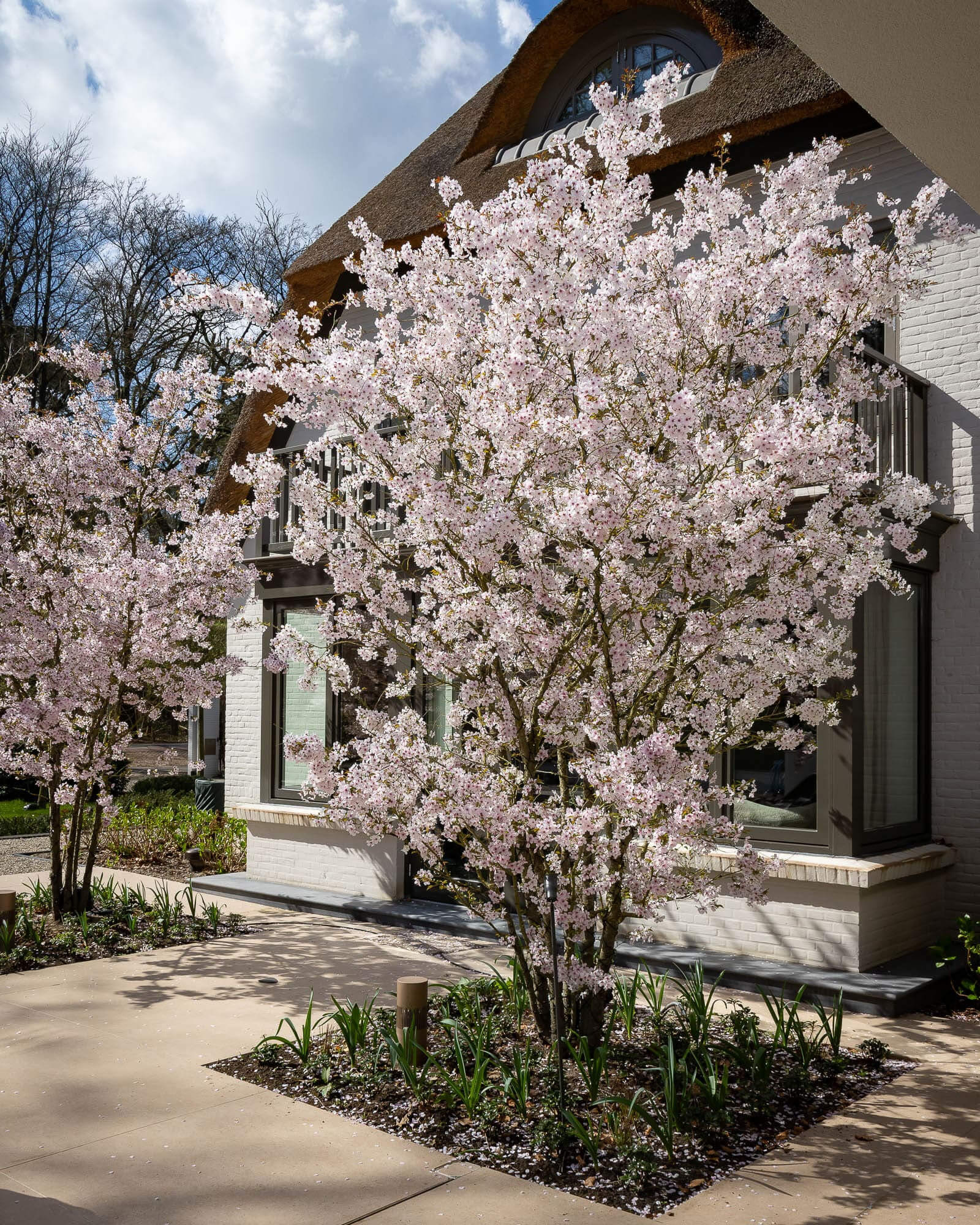 Wuivende grassen en sierlijke bloembollen met vaste planten zijn contrastrijk met de strakkere beplantingen. O.a. Geranium 'Rozanne', Hakonechloa, Salvia, Allium en Molinia 'Transparent' kleuren het zomerseizoen. Het voorjaar start met de fantastische bloei van Prunus 'The Bride', waarna de Rhododendrons het overnemen en de zomer inluiden. Kortom, in ieder seizoen is er wel iets te beleven!